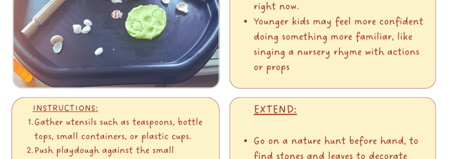 - Extend play by creating mini rock pools, complete with playdough seaweed and fish.